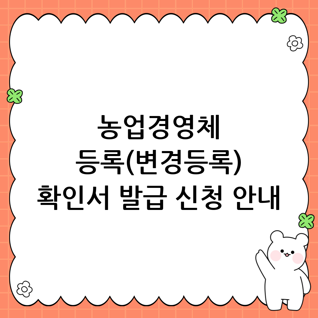 - 세제 혜택: 농업 소득에 대한 세제 혜택을 받기 위해 농업경영체 등록 확인서를 제출해야 할 수 있습니다.