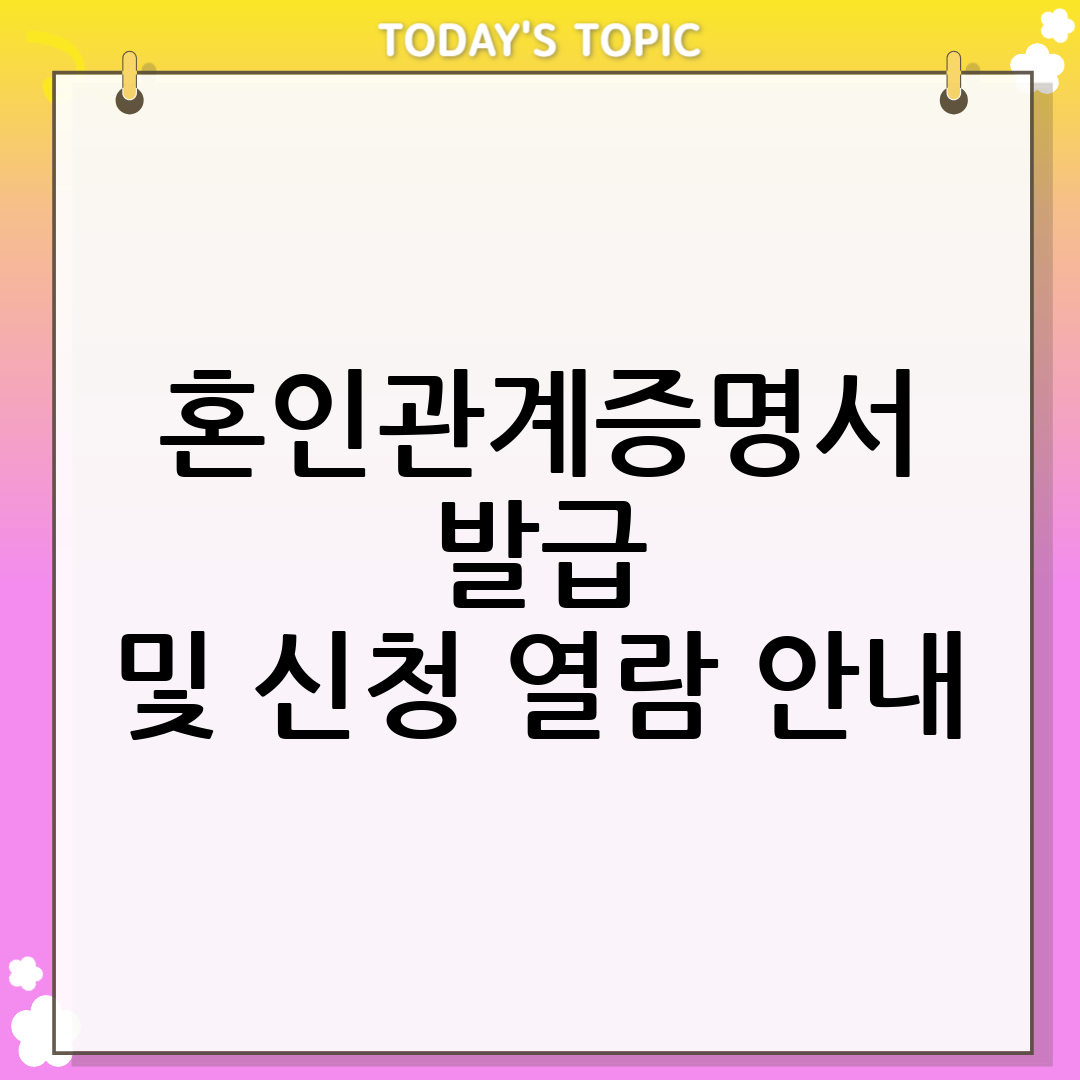 - 혼인관계증명서: 본인 및 배우자에 관한 사항과 현재의 혼인에 관한 사항을 증명합니다.