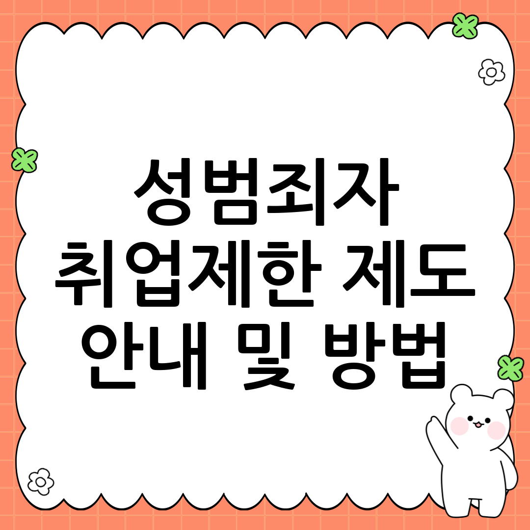 성범죄자 취업제한 제도 안내 및 방법 민원24 바로가기 대한민국에서 아동과 청소년을 보호하기 위한 중요한 제도 중 하나인 성범죄자 취업제한 제도에 대해 자세히 알아보겠습니다. 이 제도는 성범죄로부터 아동과 청소년을 예방하고 안전한 환경을 조성하는 데 목적을 두고 있습니다. 2025년 10월 현재, 강화된 법률과 함께 더욱 중요해진 이 제도에 대한 모든 것을 꼼꼼히 살펴보겠습니다. 성범죄자 취업제한 제도란 무엇일까요? … 더 읽기