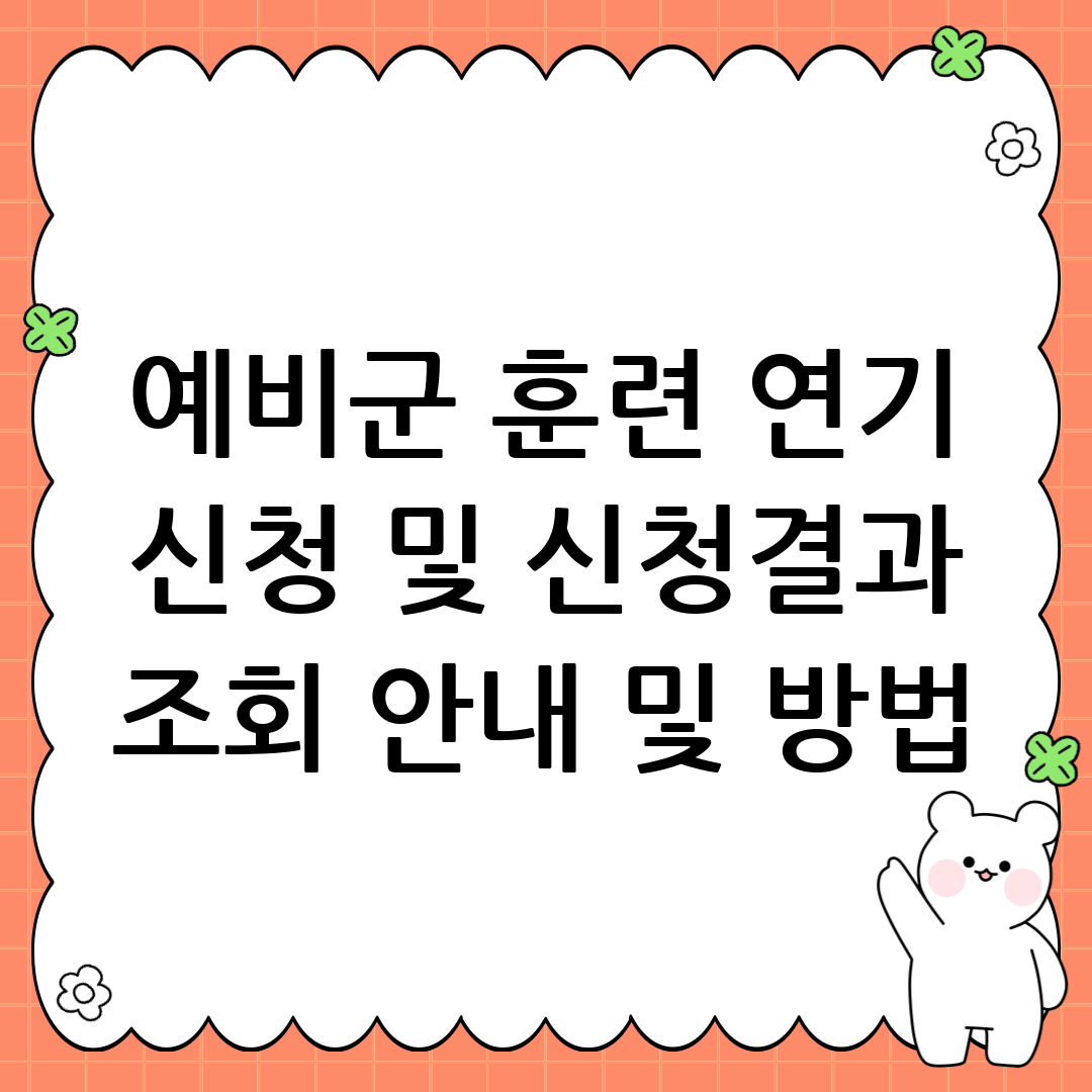 예비군 훈련 연기 신청 및 신청결과 조회 안내 및 방법 민원24 바로가기 대한민국 예비군 여러분, 2025년 10월, 예비군 훈련에 대한 모든 것을 알려드립니다. 갑작스러운 개인 사정이나 직장 문제로 예비군 훈련에 참석하기 어려울 때, 훈련 연기 제도를 활용할 수 있다는 사실 알고 계셨나요? 오늘은 예비군 훈련 연기 신청 방법부터 대상, 자주 묻는 질문까지, 예비군 훈련 연기에 … 더 읽기