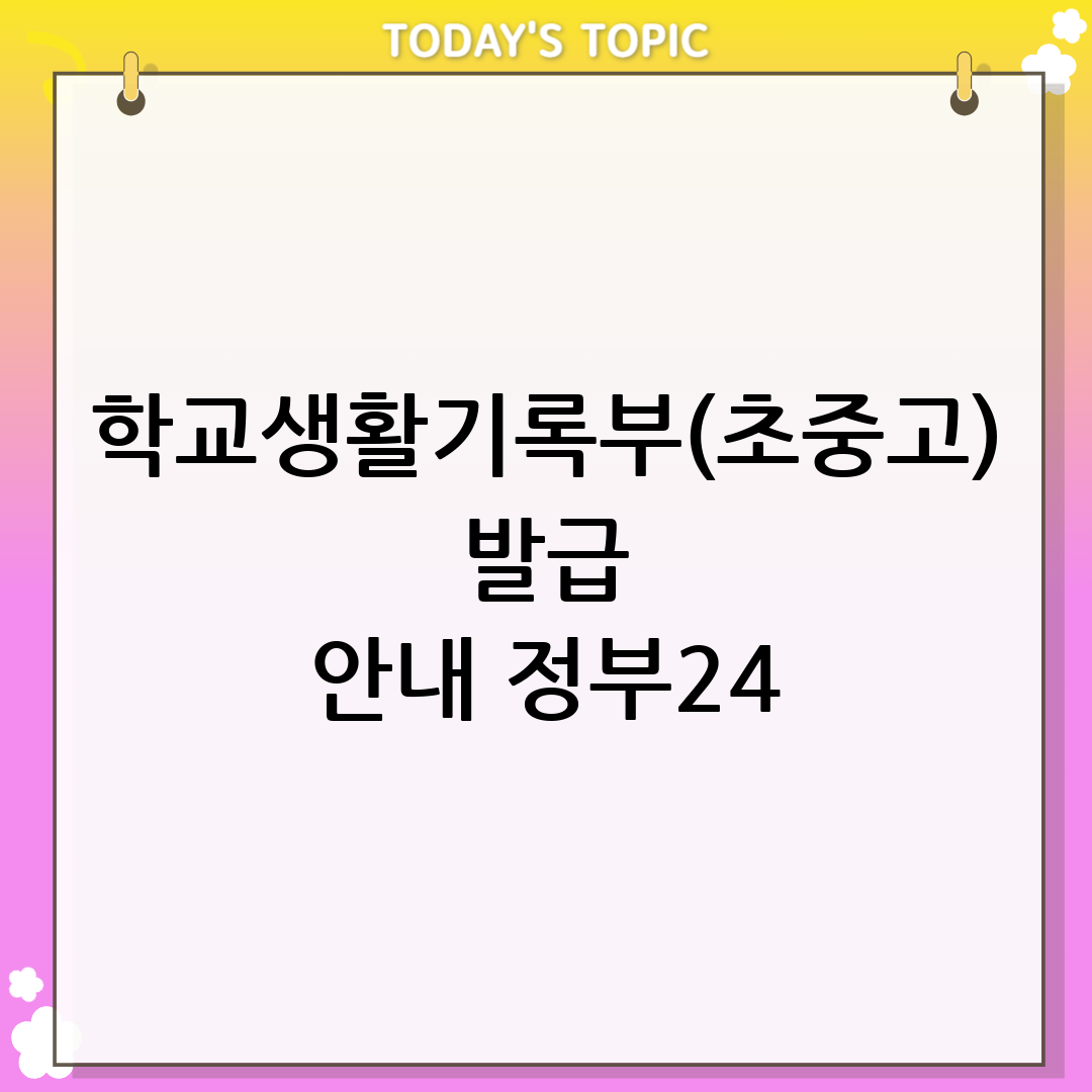 학교생활기록부(초중고) 발급 안내 정부24 바로가기 2025년 10월, 학부모님들과 학생 여러분께 유치원 및 초중등학교 학교생활기록부 발급에 대한 최신 정보를 제공합니다. 학교생활기록부는 학생의 학교생활 전반을 기록하는 중요한 자료이며, 상급학교 진학 및 다양한 분야에서 활용됩니다. 본 가이드를 통해 쉽고 편리하게 학교생활기록부를 발급받으실 수 있도록 안내해 드립니다. 학교생활기록부란 무엇인가? 학교생활기록부(이하 ‘생기부’)는 학생의 학업 성적뿐만 아니라 출결 상황, 행동 특성, … 더 읽기