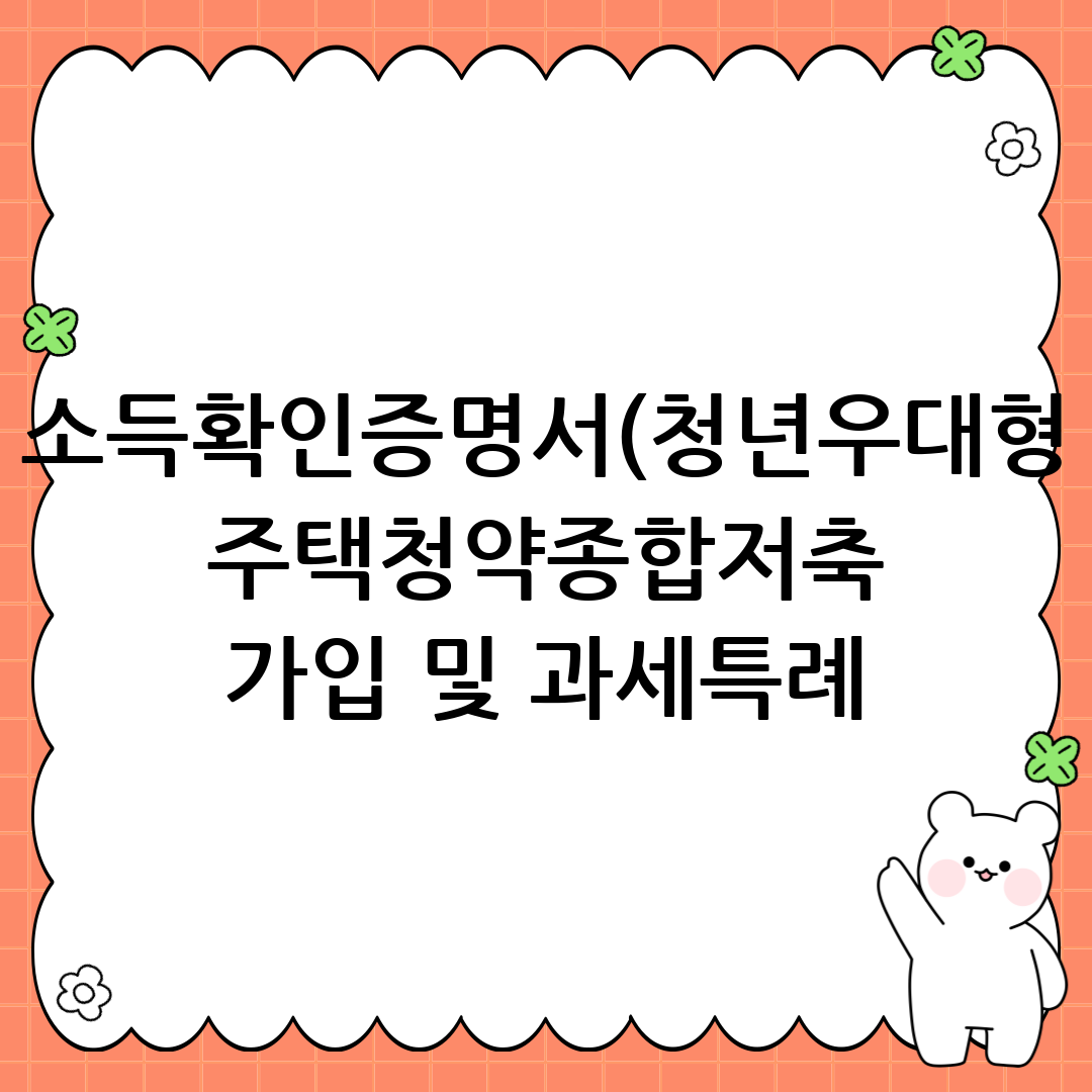 소득확인증명서(청년우대형 주택청약종합저축 가입 및 과세특례 신청용) 발급 안내 및 방법 민원24 바로가기 2025년 10월, 대한민국 청년들을 위한 특별한 혜택, 바로 청년우대형 주택청약종합저축 가입을 위한 소득확인증명서 발급에 대한 모든 것을 알려드립니다. 내 집 마련의 꿈을 이루기 위한 첫걸음, 지금부터 함께 시작해 볼까요? 본 정보는 정부24를 참고하여 작성되었으며, 최신 정보와 차이가 있을 수 있습니다. 따라서 반드시 관련 … 더 읽기